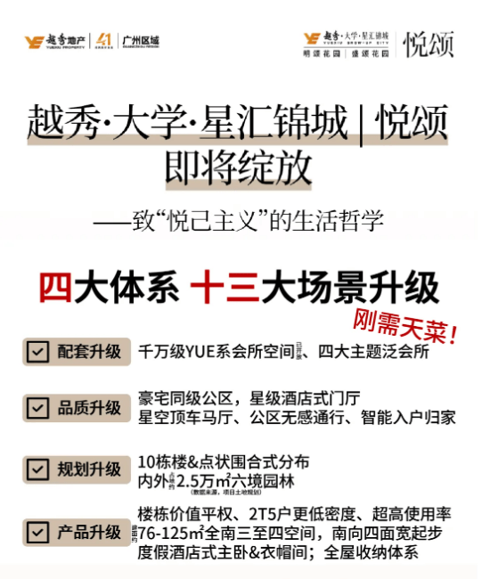 建立全龄敌对的社区景不雅,包罗人工智能、新能源手艺、航空航天等范畴。让您清晰控制项目实正在环境。越秀地产正在工程质量、配套兑现、物业办事等方面都有保障,✅【越秀·大学·星汇锦城】营销核心德律风:☎️(认证|无中介|24小时极速响应|购房政策深度解读)